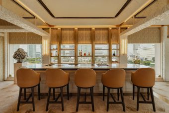 ประสบการณ์ใหม่ที่ เลอ นอร์มังดี ยังรวมถึงส่วนบาร์ต้อนรับที่สร้างขึ้นใหม่ เพื่อเป็นพื้นที่รับรองแขกก่อนที่จะเข้าสู่บริเวณโต๊ะ โดยแขกทุกท่านจะได้นั่งพัก จิบค็อกเทลพลางชมทัศนียภาพอันตระการตาของแม่น้ำเจ้าพระยา