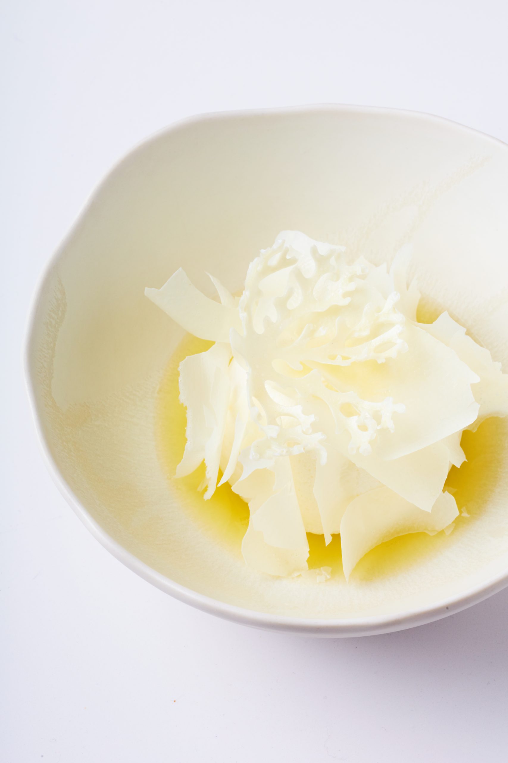 เชฟนำเสนอ สเต๊กเนื้อชาโรเลส์ ปรุงด้วยกระเทียมดำไทยและวานิลลารมควัน ลุ่มลึก กลมกล่อมด้วยกลิ่นเครื่องเทศ ปิดท้ายด้วยของหวาน มิลเฟยดอกบัวขาว แรงบันดาลใจจากมิลเฟยคลาสสิกของเชฟ ถ่ายทอดความงดงามของดอกบัว พร้อมแป้งทูลบางจากกลีบกุหลาบ ครีมวานิลลา ดอกมะลิ และรสขิงไทย ศิลปะฝรั่งเศสผสานละเอียดอ่อนแบบไทยๆ ในทุกคำที่ลิ้มลอง