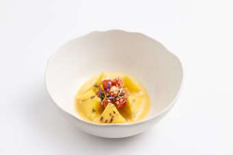 เชฟแอน-โซฟี พิค รังสรรค์ซิกเนเจอร์เมนูสุดพิเศษ ทั้ง หอยเม่นฮอกไกโด, ช็อกโกแลต Alveole, และ Les Berlingots ©ASP ราวิโอลีทรงสามเหลี่ยมไส้ชีสคาม็องแบร์ แซฟฟรอน คาโมมายล์ และมะเขือเทศดอง พลาดไม่ได้กับ บลูล็อบสเตอร์จากบริตทานี เสิร์ฟพร้อมซุปดาชิผลไม้สีแดงและสาหร่าย และ ปลากะพงซอสแชมเปญกับคาเวียร์ เมนูร้อน-เย็นในตำนานที่ผสานรสละมุนอย่างลงตัว