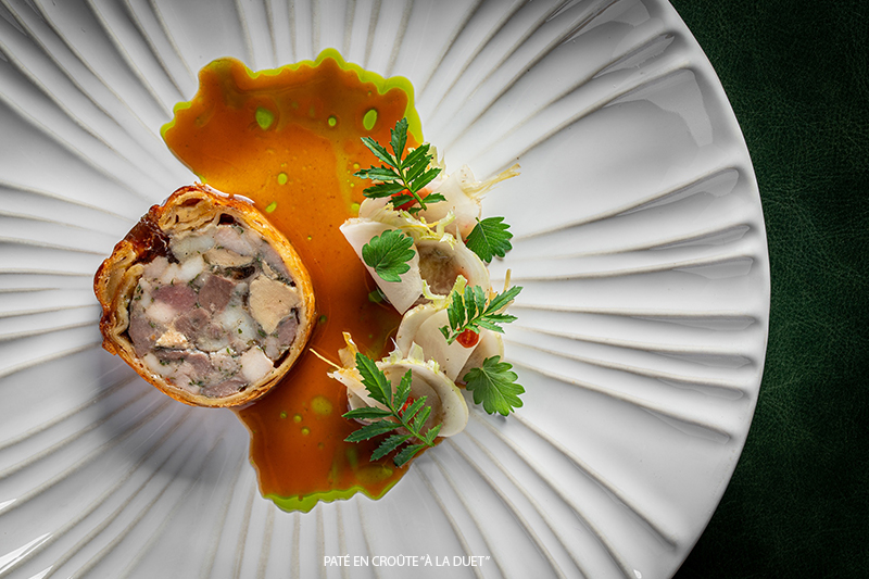 ถ่ายทอดแนวคิดด้านอาหารของ Duet อย่างสมบูรณ์ ที่รวบรวมเมนูซิกเนเจอร์ของห้องอาหารและวัตถุดิบตามฤดูกาลที่ดีที่สุด นำเสนอเป็นการเดินทางของรสชาติที่สะท้อนวิสัยทัศน์ร่วมกันของ CHEF DAVID TOUTAIN (เชฟเดวิด ทูแทง) และ CHEF VALENTIN FOUACHE (เชฟวาลองแตง ฟูอาช) โดยสามเมนูหลักที่ทำหน้าที่เป็นตัวแทนอัตลักษณ์ด้านอาหารของ Duet ได้แก่ เมนู ALASKAN KING CRAB, CAVIAR SHADI SCHRENKI จับคู่กับ คาเวียร์ SHADI SCHRENKI โดดเด่นด้วยไข่มุกที่ให้สัมผัสของครีมสดและความเค็มกลิ่นอายทะเล พร้อมกลิ่นหอมอ่อน ๆ ของวานิลลาและมะกรูดที่ช่วยสร้างสมดุลของกลิ่นรส, เมนู BRITTANY BLUE LOBSTER, BRASSICA, ÉPICÉA เมนูที่อยู่ในรายการของ Duet ตั้งแต่วันแรกที่เปิดบริการ เสิร์ฟคู่กับ épicéa หรือ สนสปรูซ ที่ตีความให้มีกลิ่นรสคล้ายซิตรัส ให้โน้ตของผิวมะนาวและเรซินอ่อน ๆ เสริมด้วยซอส Homardine Sabayon และความสดของผักตระกูล Brassica และ เมนู NORMANDY SCALLOP, CAULIFLOWER, XO SAUCE หอยเชลล์จากนอร์มังดีย่างเหนือถ่านอย่างนุ่มนวล เสิร์ฟกับดอกกะหล่ำและซอส X.O. ที่ผ่านการเคี่ยววัตถุดิบทะเลแห้งอย่างช้า ๆ ให้รสลึกซึ้ง รวมถึงเมนู PATÉ EN CROÛTE “À LA DUET”, ULTIMUS WAGYU 6/7, TETRAGONIA, KUMQUAT, TROU NORMAND – APPLE TATIN, 80% CHIANG MAI CHOCOLATE ก่อนปิดท้ายด้วยไวน์เหลืองจากแคว้นจูรา ฝรั่งเศส