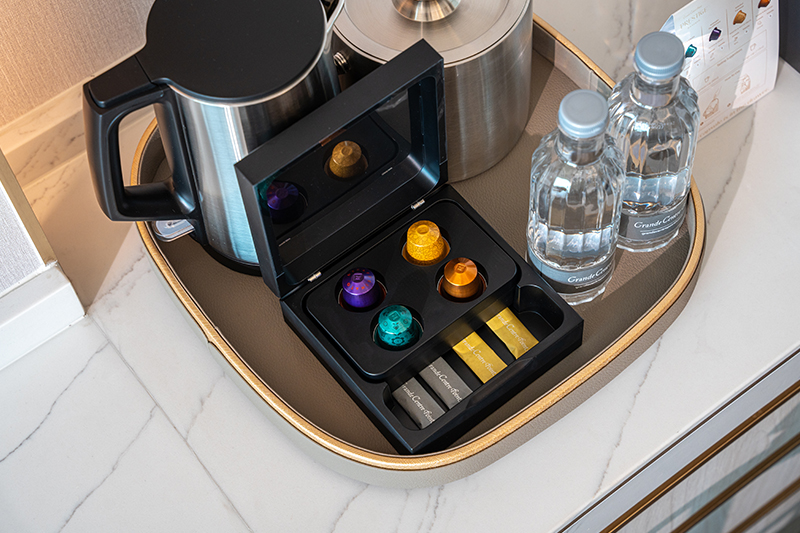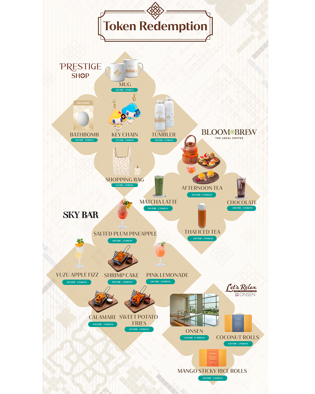 ก่อนที่จะผ่อนคลายไปกับสิ่งอำนวยความสะดวกสุดพิเศษ บรรยากาศรอบ ๆ ทำให้เราเพลิดเพลินไปกับดีเทลอันสง่างามการออกแบบในส่วนต่าง ๆ ของโรงแรม ที่นำรูปทรงเรขาคณิตอันทันสมัย เส้นสายโค้งมน พร้อมกระจกบานกว้าง ผสานความหรูหราของวัสดุพรีเมียม อย่าง หินอ่อน และงานไม้ที่ให้ความรู้สึกอบอุ่น อันเป็นลักษณะเด่นของสไตล์อาร์ตเดโค ทำให้มีหลายจุดถ่ายรูปเช็กอินสวยงาม และดีเอ็นเอที่บ่งบอกถึงความพิเศษอีกอย่างของโรงแรมในเครือ Grande Centre Point Hotels เราจะได้รับเหรียญ Token ในจำนวนเหรียญที่ขึ้นอยู่กับแต่ละแพ็กเกจการจองห้องพัก ในระหว่างการเข้าพักสามารถใช้ Token แลกใช้บริการ สแน็ก เครื่องดื่ม หรือของที่ระลีกที่ Prestige Shop ได้ตามจำนวนของ Token ที่โรงแรมกำหนด หรือสามารถเก็บไว้ใช้กับโรงแรมในเครือสาขาอื่นได้ด้วย