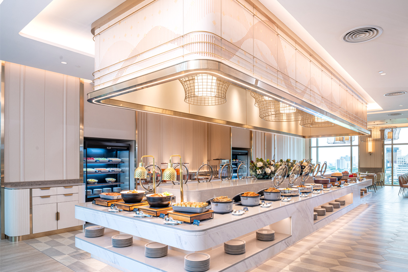 โดดเด่นไม่แพ้ห้องพัก นั่นก็คือเรื่องของอาหารที่ชวนเปิดประสบการณ์ไปกับรสชาติ ตั้งแต่มื้อแรกของวัน The Garden Restaurant ให้บริการอาหารเช้าบุฟเฟ่ต์ไทยและอาหารนานาชาติในมื้อเช้า พร้อมเมนูไทยไฮไลท์สี่ภาค ทั้งผัดไทย ปอเปี๊ยะสด ข้าวซอย ไก่ย่างสมุนไพร เพลิดเพลินกับทัศนียภาพของทั้งวิวเมืองและสวนสวยลอยฟ้าของ The Garden ผ่านกระจกบานใสบานกว้างเปิดรับแสงธรรมชาติ มอบบรรยากาศที่สมบูรณ์แบบสำหรับการรับประทานอาหารอย่างผ่อนคลายใจกลางกรุงเทพฯ รวมถึงบุฟเฟต์อาหารเย็น วันศุกร์ – เสาร์ ในคอนเซปส์ Sea & Land โดยไฮไลต์ทางเลือกอาหารเช้าสุดพิเศษ แขกผู้เข้าพักสามารถเลือกรับประทานอาหารเช้าได้สองรูปแบบ จะเลือกอิ่มอร่อยกับเมนูพิเศษจาก ‘เชฟแมน’ ที่เสิร์ฟถึงห้องพัก หรือเลือกรับประทานที่ห้องอาหาร The Garden Restaurant ก็ได้เช่นกัน