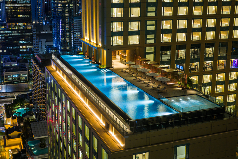 เพื่อเป็นการตอบโจทย์ Wellness Lifestyle ใจกลางเมือง โรงแรมยังให้ความสำคัญกับไลฟ์สไตล์สุขภาพและการผ่อนคลายอย่างแท้จริง ด้วยการสร้างสรรค์บริการต่าง ๆ อย่างครบครัน โดยเฉพาะ Sky Pool สระว่ายน้ำอินฟินิตี้มาตราฐานโอลิมปิคที่มีความยาว 50 เมตร มาพร้อมโบนัสวิวเมืองแบบพาโนรามา โดยเฉพาะลอยคอในสระน้ำยามเย็นชมวิวท้องฟ้าเปลี่ยนสีและพระอาทิตย์ซันเซ็ต เป็นช่วงเวลาที่สุดแสนโรแมนติก และชิลไปกับเครื่องดื่มเย็น ๆ สดชื่นที่ Sky Bar บาร์ริมสระว่ายน้ำ