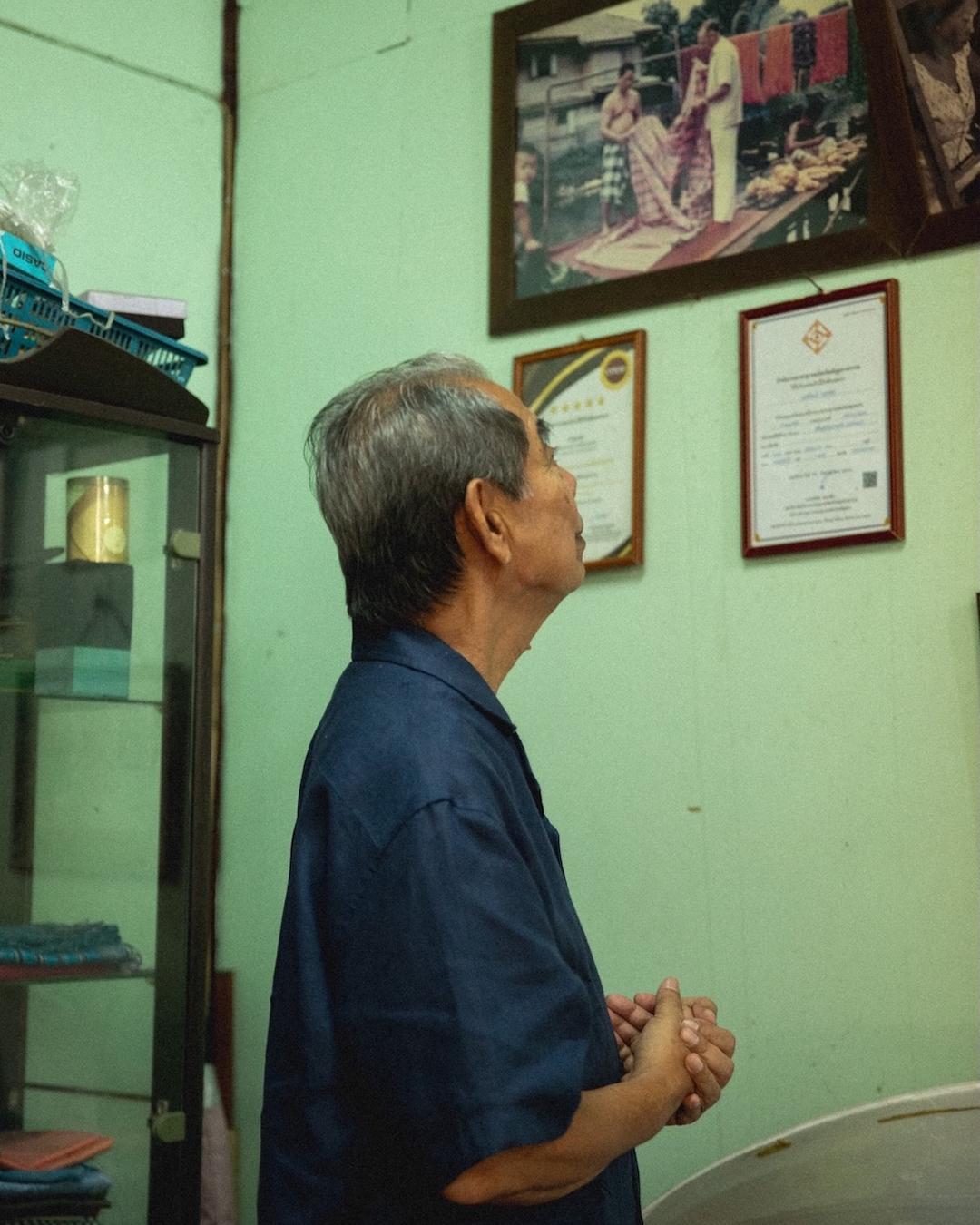 คุณนิพนธ์เล่าให้ฟังว่า ครอบครัวชาวจามมีวัฒนธรรมการทอผ้าไหมพื้นเมืองที่สืบทอดกันมาหลายชั่วอายุคน สตรีชาวจามมีฝีมือการทอผ้าใช้เองในครัวเรือน อย่าง ทอผ้าโสร่ง ผ้าขาวม้า สำหรับผู้ชาย และผ้าโจงกระเบนสำหรับผู้หญิงใช้ในชีวิตประจำวัน สำหรับลวดลายดั่งเดิมที่เป็นซิกเนเจอร์ อย่าง ลายกระรอก ลายเต่า และเส้นทอของผ้าไหมคุณภาพสูง เนื้อแน่นละเอียด สีสวยสดทนทานในกรรมวิธีการผลิตแบบดั้งเดิม และนับตั้งแต่อดีตถึงปัจจุบัน ผ้าไหมจากชุมชนบ้านครัวยังถูกส่งเข้าไปในราชสำนักตลอดทุกรัชกาลเลยทีเดียว แต่ในช่วงสงครามโลกครั้งที่ 2 พ.ศ. 2482–2488 การทอผ้าของชุมชนบ้านครัวได้หยุดชะงักชั่วคราว ก่อนกลับมาสานต่อหลังสงครามยุติ พร้อมกับการเข้ามาของจิม ทอมป์สัน ผู้มีบทบาทในการผลักดันผ้าไหมไทยสู่สายตาชาวโลก