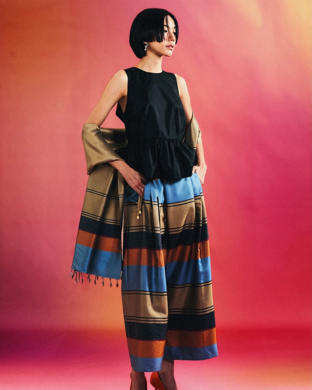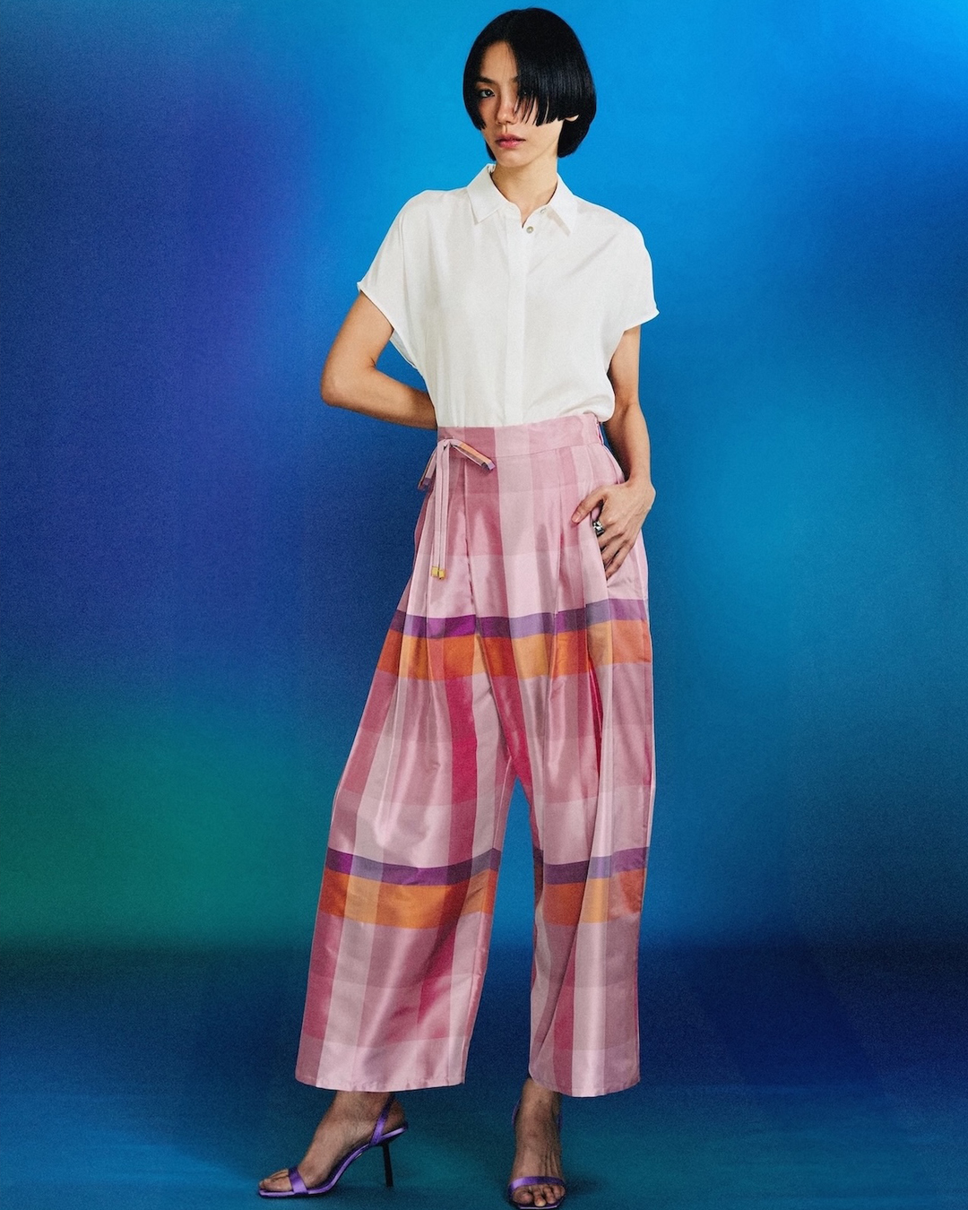 คอลเลกชันนี้ ยังเป็นการเฉลิมฉลองความสัมพันธ์อันแน่นแฟ้นระหวางจิม ทอมป์สัน กับชุมชนช่างทอผ้าไทยบ้านครัว โดยดึงแรงบันดาลใจจากแพทเทิร์นในอาร์ไคฟ์และเทคนิคการทอที่สืบทอดกันมาหลายชั่วอายุคน และลวดลาย ‘ผ้าขาวม้า‘ แบบดั้งเดิม มารังสรรค์เป็นไอเทมแฟชั่นที่ตอบโจทย์ไลฟ์สไตล์ยุคใหม่ 4 ไอเทมซิกเนเจอร์ทำจากไหมทอมือ ได้แก่ กางเกง Fisherman สำหรับสุภาพสตรี, ผ้าพันคอ, พ็อกเก็ตสแควร์ และเนกไท นำเสนอในลวดลายและสีสันทั้งหมด 4 แบบ ได้แก่ Pakaoma Rose Pink, Border Stripes Blue, Horizontal Stripes Beige และ Border Stripes Pink โดยแต่ละลายสะท้อนฝีมือการทอผ้าอันประณีตของชุมชนบ้านครัวอย่างแท้จริง