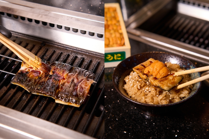 นอกจากนี้ยังมี Salmon ปลาแซลมอนเกรดพรีเมียมนำเข้า ที่เปี่ยมด้วยความสดใหม่ นำมาย่างพร้อมกับทาซอสสูตรพิเศษของทางร้าน เพื่อเพิ่มรสชาติที่กลมกล่อมและกลิ่นหอมชวนรับประทาน อีกหนึ่งเมนูไฮไลต์ใหม่คือ Unagi ปลาไหลน้ำจืดย่าง ที่ทาด้วยซอสหวานสูตรพิเศษของทางร้าน ความพิเศษของจานนี้คือเนื้อปลาที่นุ่มละลายในปาก ตัดกับส่วนหนังที่ย่างจนกรอบ (Crispy) และมีความมันเล็กน้อย มอบมิติและอรรถรสในการรับประทานได้อย่างลงตัว เพิ่มความพรีเมียมไปอีกขั้นด้วยการ On-top “Uni” (ไข่หอยเม่น) ในราคาเพียง 250 บาท เติมเต็มรสชาติหอมมันในแบบญี่ปุ่นแท้ ๆ ที่ยกระดับคำนี้ให้หรูหราและน่าลิ้มลองยิ่งขึ้น ต่อด้วย Aka Ebi กุ้งแดงอาร์เจนตินา ซึ่งเป็นวัตถุดิบคุณภาพที่คัดสรรมาเป็นอย่างดี เสน่ห์อันเป็นเอกลักษณ์ของ Aka Ebi อยู่ที่เนื้อกุ้งหวานฉ่ำและมีสัมผัสที่หนึบเด้งตามธรรมชาติ ผ่านการย่างในระดับมีเดียมแรร์ เพื่อสร้างสมดุลแห่งรสชาติ โดยทำให้ผิวภายนอกถูกความร้อนเพียงพอ จนเกิดกลิ่นหอมกรุ่น ขณะที่เนื้อด้านในยังคงรักษาความชุ่มฉ่ำและความหวานตามธรรมชาติของกุ้งแดงไว้ได้อย่างครบถ้วน ปิดท้ายมื้ออาหารอย่างลงตัวด้วย Tamago (ไข่หวานญี่ปุ่น) เมนูใหม่ที่นำไข่หวานมาย่างอย่างพิถีพิถันจนได้ความร้อนที่พอเหมาะ ทำให้รสชาติหวานมันอร่อย กลมกล่อม และมีกลิ่นหอมของถ่านอ่อน ๆ สร้างความประทับใจสุดท้ายได้อย่างนุ่มนวล