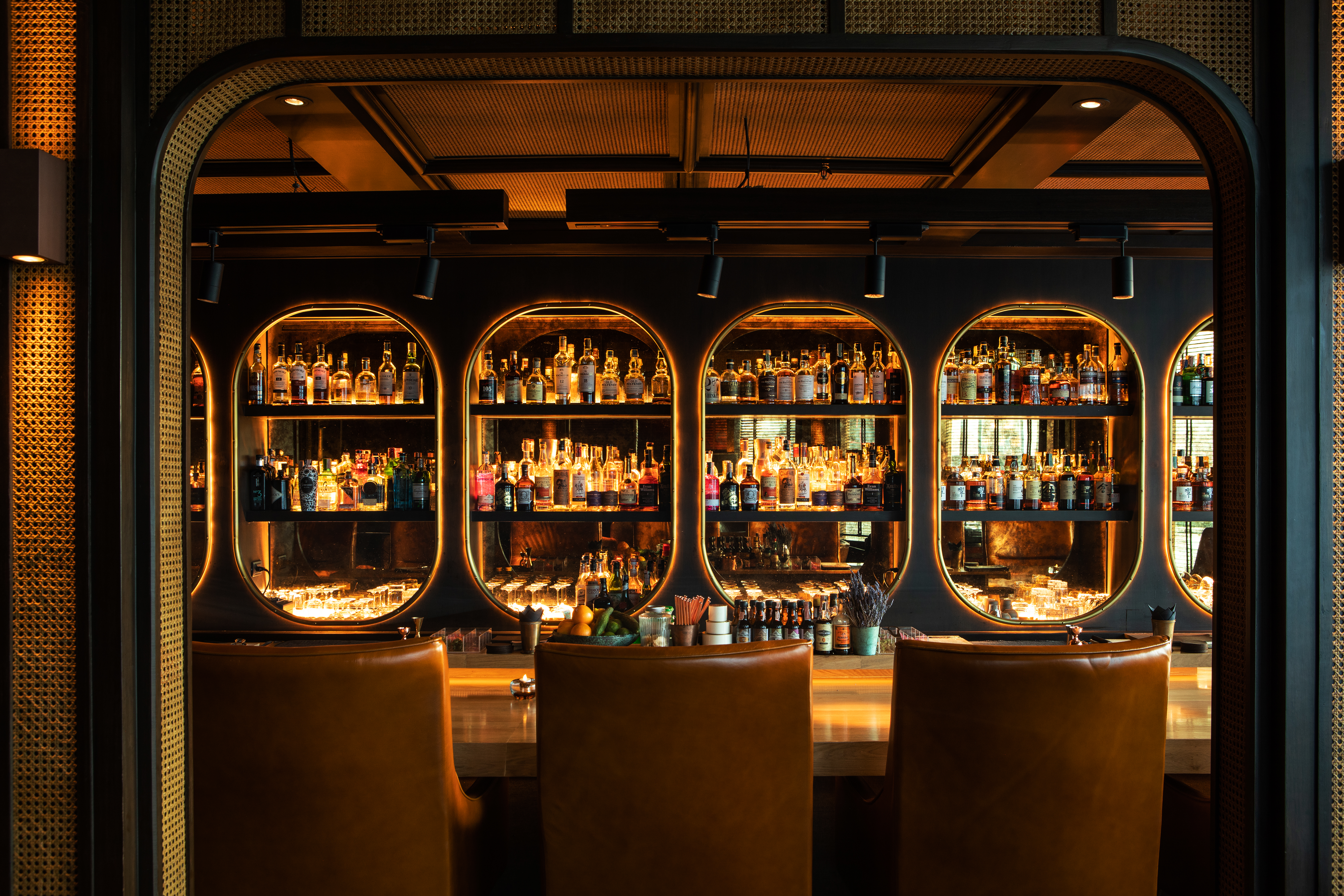 ทางเดินระหว่างเข้าไปในร้าน ตกแต่งด้วยชั้นวางของที่ทำจากไม้ ผ่านประตูบัวขอบโค้ง ที่ให้ความรู้สึกเหมือนได้ย้อนเวลากลับไปในอดีต ภายในเลือกใช้โซฟาเบาะหนังสีน้ำตาล สะท้อนความคลาสสิกและเรียบหรู บวกกับเฟอร์นิเจอร์งานไม้ร่วมสมัย ที่ดีไซน์ออกมาได้อย่างลงตัว ลึกเข้ามาด้านในจะพบกับเคาน์เตอร์บาร์ที่สว่างไสว เรียงรายไปด้วยหลากหลายเมนูเครื่องดื่ม โดยหากต้องการได้รับประสบการณ์การดื่มอย่างเต็มที่ ขอแนะนำให้เลือกนั่งบริเวณหน้าเคาน์เตอร์บาร์นี้ เพราะนอกจากความสะดวกสบาย ที่จะได้รับจากเก้าอี้หนังนุ่มนั่งสบายแล้ว ยังจะได้พูดคุยแลกเปลี่ยนประสบการณ์กับนักดื่ม และบาร์เทนเดอร์อีกด้วย