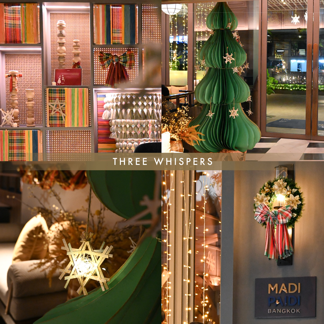 รางวัลรองชนะเลิศอันดับ 1 ได้แก่ ทีม Three Whispers จาก จุฬาลงกรณ์มหาวิทยาลัย ที่สร้างสรรค์ช่วงเทศกาลแห่งความสุขนี้ ในบรรยากาศสงบ เรียบง่าย และอบอุ่น ตั้งแต่บริเวณทางเข้าไปจนถึงเคาน์เตอร์ต้อนรับผ่านการรังสรรค์ต้นคริสต์มาสทำมือจากกระดาษเหลือใช้ โคมไฟเฉลว และผ้าขาวม้าจากอำเภอไหล่หิน จากจังหวัดลำปาง ผสานสัญลักษณ์วัฒนธรรมไทยเข้ากับแสงไฟโทนอุ่นได้อย่างกลมกลืน