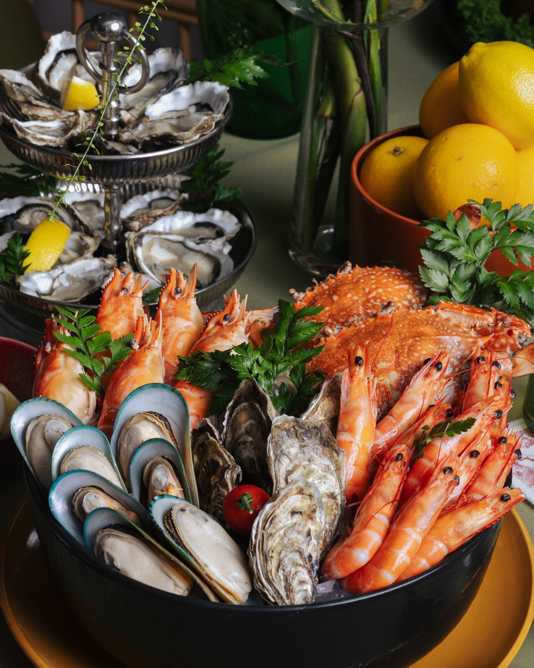 พบซีฟู้ดออนไอซ์หลากหลายรายการ ไม่ว่าจะเป็น หอยนางรมสดใหม่, หอยเชลล์ฮอกไกโด อีกมุมซาชิมิที่มีให้เลือกอิ่มอร่อยแบบละลานตา รวมไปถึงสเตชั่นชีสราแคลตต์, และสเตชั่นคาร์ฟวิ่งสุดพรีเมียม อาทิเช่น เนื้อแกะย่าง และบีฟ เวลลิงตัน ปิดท้ายมื้ออร่อยด้วยของหวานประจำเทศกาลและเมนูไอศกรีมซิกเนเจอร์จากเมอเวนพิค