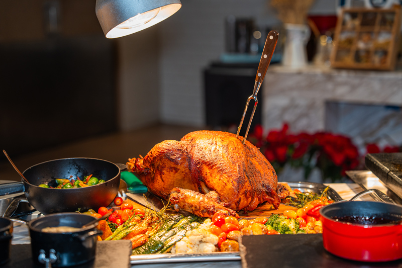 โดยมีเมนูพิเศษ ไม่ว่าจะเป็น อกไก่งวงย่างสไลซ์พร้อมซอสแครนเบอร์รี, แฮมเคลือบน้ำผึ้งกับซอสสับปะรด, และไพรม์ ริบส์ ย่าง ราดน้ำเกรวี่และครีมฮอร์สแรดิช ยกระดับด้วยการเสิร์ฟอาหารใกล้ชิดถึงโต๊ะตลอดมื้ออาหาร
