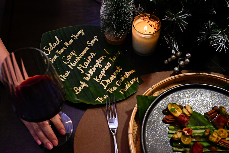ฉลองค่ำคืนแห่งความสุขด้วยมื้อค่ำ เมนู 4 คอร์สสุดพิเศษ เริ่มต้นด้วย สลัดกะหล่ำดาวสไตล์ไทย ตามด้วย ซุปเห็ดหอมกลิ่นทรัฟเฟิล เสิร์ฟคู่ข้าวเกรียบว่าวเพิ่มรสสัมผัสพิเศษไม่เหมือนใคร สำหรับเมนูจานหลัก เลือกอร่อยได้ระหว่าง บีฟเวลลิงตันไทยวากิวราดซอสเกรวี่มะแขว่น หรือ เมนูผัดกะเพราไก่งวง ปิดท้ายค่ำคืนด้วย คริสต์มาสพุดดิ้ง เสิร์ฟพร้อมซอสชาไทยหอมละมุน