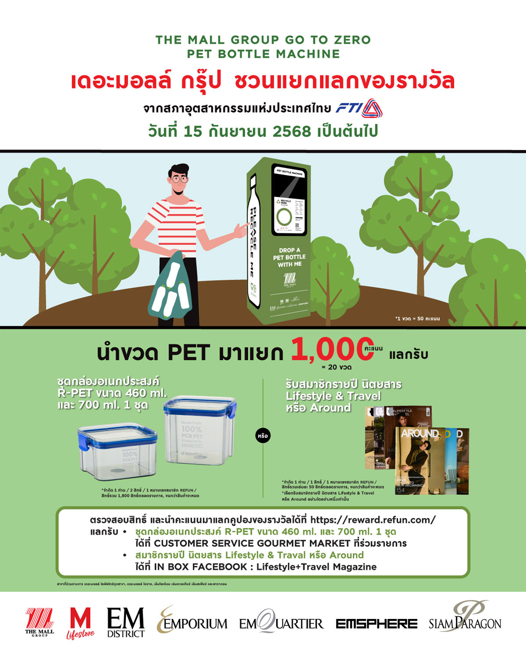 ส.อ.ท. ร่วมสร้างสังคมรีไซเคิลอย่างยั่งยืน ชวนแยก-แลก-รางวัล ในโครง “The Mall Group Go To Zero : PET Bottle Machine” วันนี้ – 30 พ.ย. 68