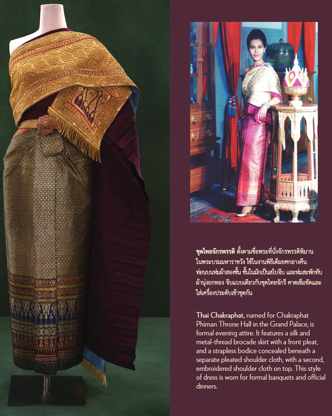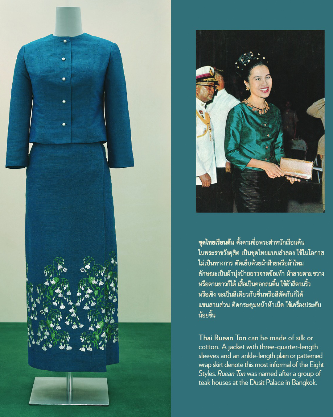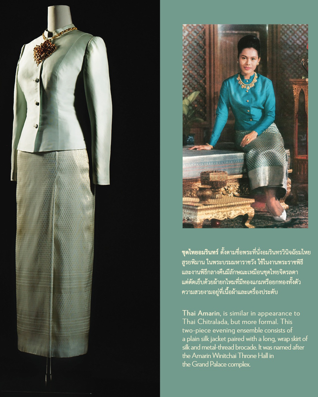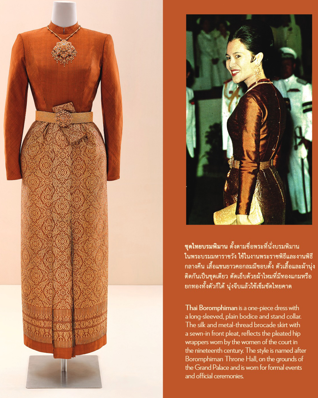 สมเด็จพระนางเจ้าสิริกิติ์ พระบรมราชินีนาถ พระบรมราชชนนีพันปีหลวง มีพระราชดำริที่จะทรงฉลองพระองค์ที่แสดงถึงถึงเอกลักษณ์ความเป็นไทย ในการโดยเสด็จพระบาทสมเด็จพระบรมชนกาธิเบศร มหาภูมิพลอดุลยเดชมหาราช บรมนาถบพิตร ไปทรงเจริญสัมพันธไมตีกับชาติ ต่าง ๆ ในทวีปยุโรปและสหรัฐเมริกา เมื่อ พ.ศ. 2503 จึงได้มีพระราชเสาวนีย์ให้ผู้เชี่ยวชาญออกแบบ และมีพระราชวินิจฉัยเห็นชอบ จนได้ชุดไทยทั้งหมด ๘ แบบ ซึ่งรู้จักกันในเวลาต่อมาว่า “ชุดไทยพระราชนิยม” และกลายเป็นต้นแบบชุดประจำชาติของสตรีไทยในปัจจุบัน โดยจัดแสดงในรูปแบบนิทรรศการ “ชุดไทย : จากราชสำนักสู่ราชนิยม” เปิดให้เข้าชม ณ ห้องจัดแสดง 1
