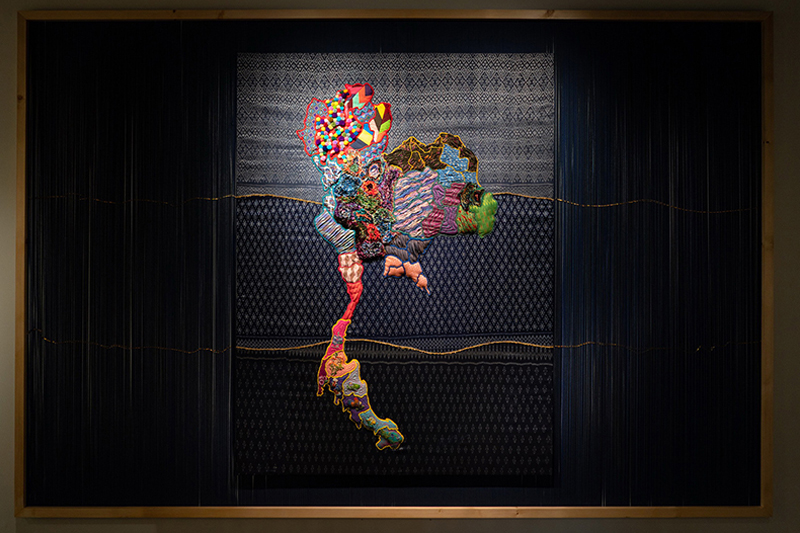 จัดแสดงผ้าที่สวยงามเป็นเอกลักษณ์จากภูมิภาคต่าง ๆ ของไทย ผ่านผลงานศิลปะสื่อผสมร่วมสมัยที่ผลิตจากผ้ามูลนิธิส่งเสริมศิลปาชีพฯ ในภูมิภาคต่าง ๆ นอกจากนี้ยังจัดแสดงตัวอย่างผ้าแต่ละประเภทและอุปกรณ์ทอผ้า รวมถึงกรรมวิธีการทอผ้าหลากชนิด ได้แก่ ผ้าขิด ผ้าจก ผ้ายก ผ้าฝ้าย ผ้าแพรวา ผ้าชาวไทยภูเขา ผ้ามัดหมี่ ผ้าปักซอยแบบไทย และผ้าบาติก เพื่อส่งเสริมความรู้ความเข้าใจในความเป็นมา และความสําคัญของผ้าแต่ละท้องถิ่น เพื่อสร้างแรงบันดาลใจในการอนุรักษ์มรดกทางวัฒนธรรมอันทรงคุณค่า และเพื่อสืบสานพระราชปณิธานของสมเด็จพระบรมราชชนนีพันปีหลวง