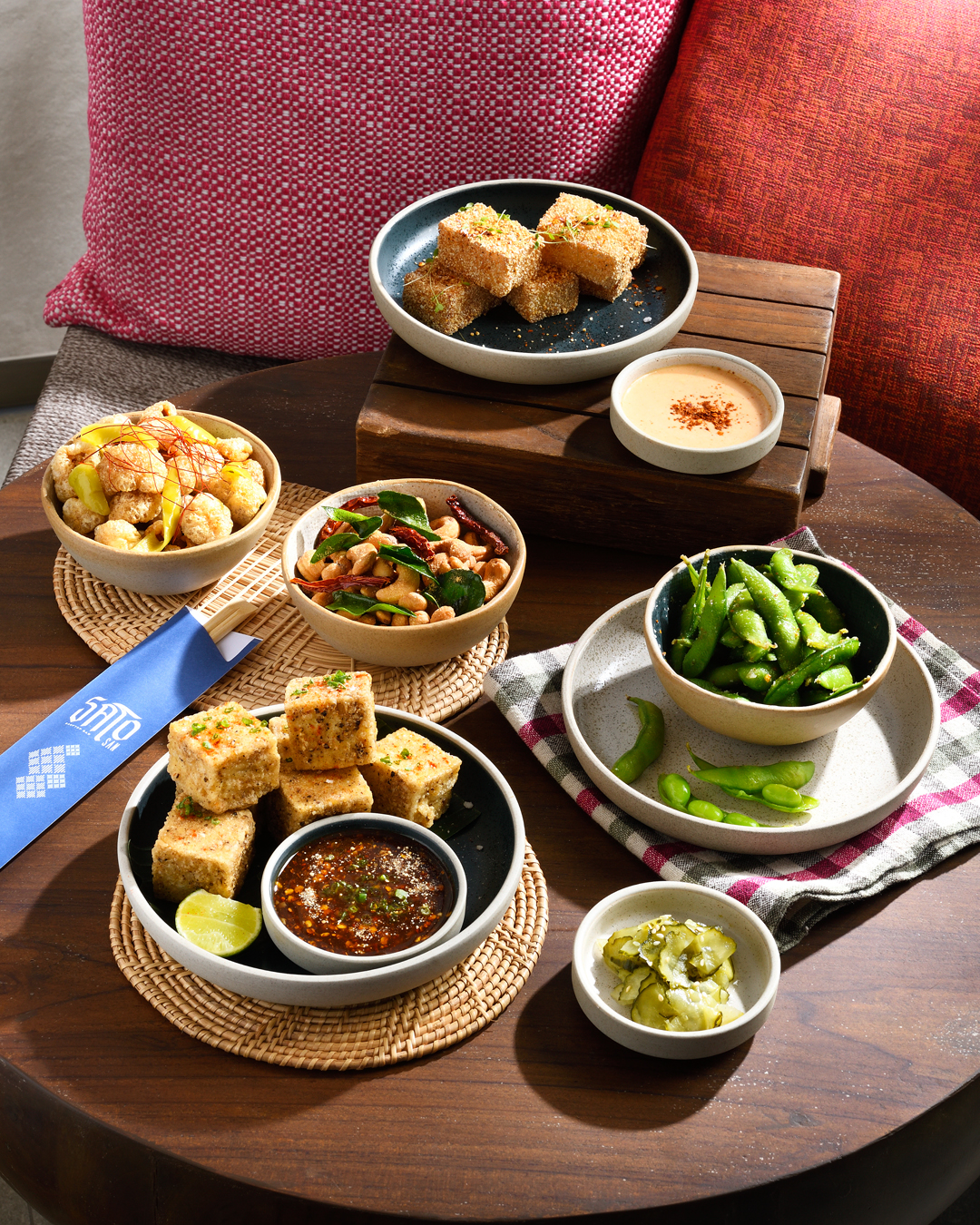 ด้วยคอนเซปต์อาหารเน้นการแชร์และการรับประทานร่วมกันแบบสังสรรค์ เสิร์ฟอาหารสำหรับแบ่งปัน พูดคุยสนุกสนาน ทำให้ได้เพลิดเพลินไปกับการลิ้มลองหลากหลายเมนู เรียกน้ำย่อยกันด้วย Edamame ถั่วแระญี่ปุ่นโรยเกลือพริก รสหวานมันของเมล็ดถั่วตัดกับความเค็มของเกลือและความเผ็ดร้อนบาง ๆ ของพริกและผงโทการาชิ ต่อกันด้วยเมนูทานเล่น อย่าง Salmon Belly ท้องปลาแซลมอนเสียบไม้ เซียร์ให้หนังกรอบเสิร์ฟมาพร้อมซอสเผ็ดและเลมอน, Crispy Pork Skin แคบหมูทอดกรอบ ให้ความเค็มเล็กน้อยเข้าคู่กับพริกดอง