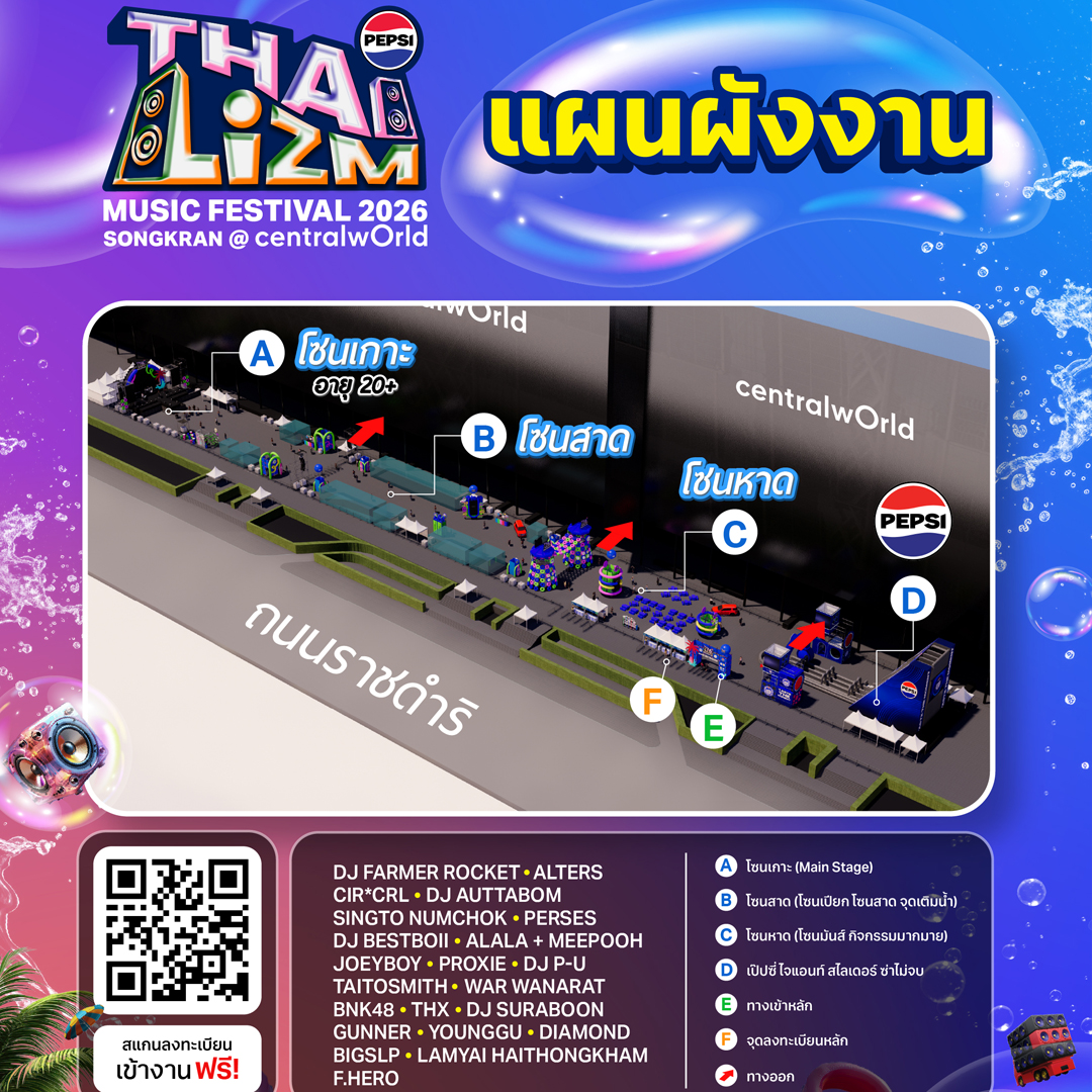 ข้อมูลเพิ่มเติม: PEPSI Presents THAI LIZM 2026 คลิก: Facebook: Thailizm Music Festival